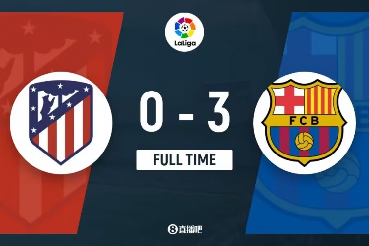 下半场补时3分钟。最终全场比赛结束,马竞0-3巴萨。