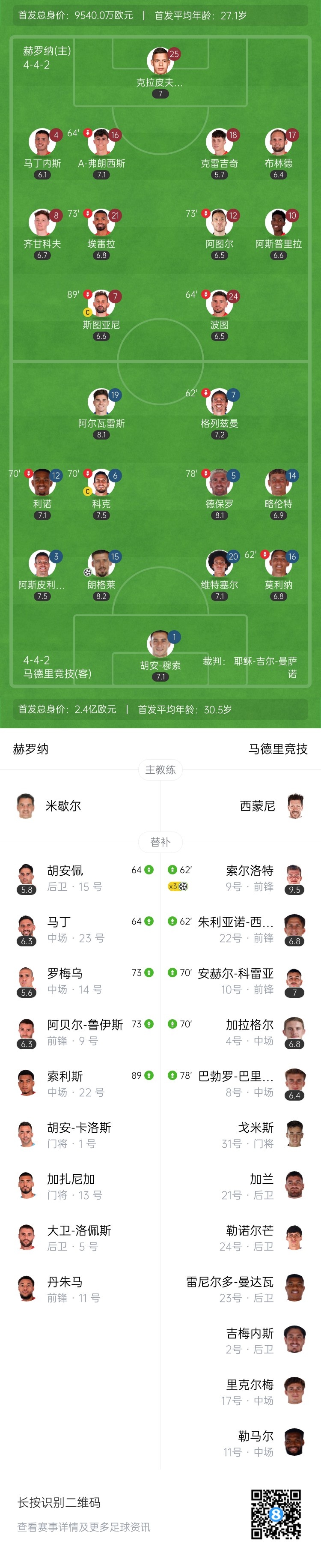 第68分钟,马竞打破僵局!禁区内右侧德保罗不停球直接扫到门前,替补登场的索尔洛特小禁区前推射破门!马竞1-0领先赫罗纳↓