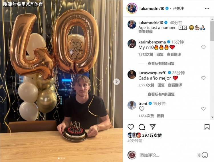 莫德里奇迎来40岁生日,他在社交媒体上晒出生日蛋糕,配文:“年龄只是一个数字,40岁😬💪🏻🙏🏻”