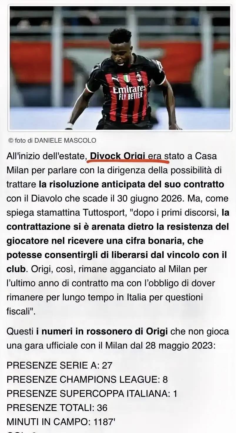 也就是说只要解约成本超过162万欧元,还不如等奥里吉自然合同到期自然走人,所以奥里吉从开始谈判就没有结果。说的直白一点,奥里吉从开始就没打算离开,他开的200万欧元对于米兰而言是增加成本。