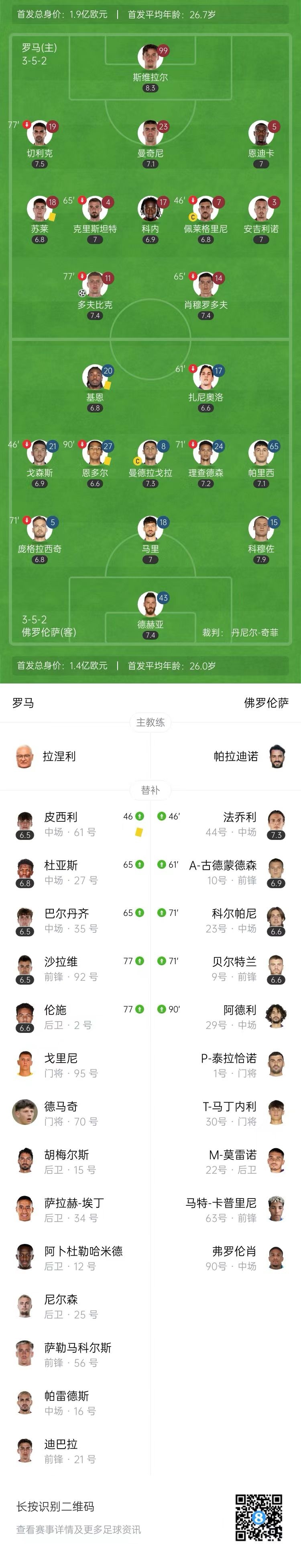 第47分钟,罗马前场逼抢断球,科内禁区前沿起脚远射被门将摘下。↓