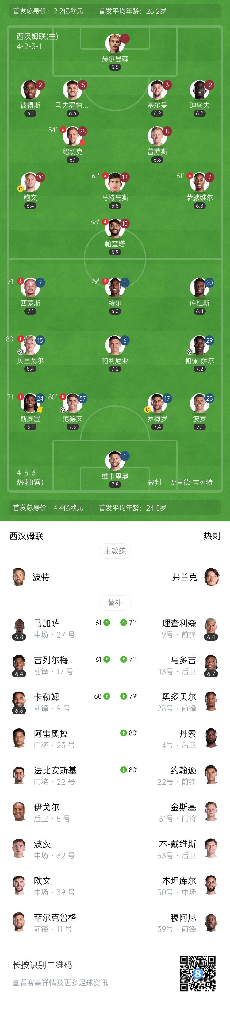 第47分钟,热刺左路角球机会,哈维-西蒙斯开到后门柱附近,萨尔头球破门!热刺1-0领先西汉姆联↓