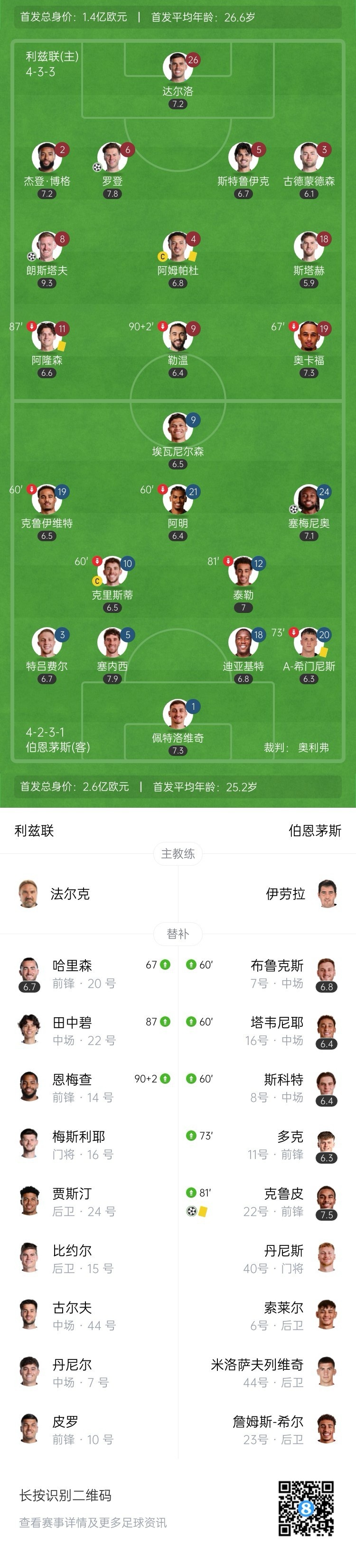 利兹联扳平!罗登头球破门!第37分钟,朗斯塔夫主罚角球开出,罗登抢点头球攻门,塞梅尼奥头球解围时对门将有干扰,皮球飞进网窝,利兹联1-1伯恩茅斯!↓