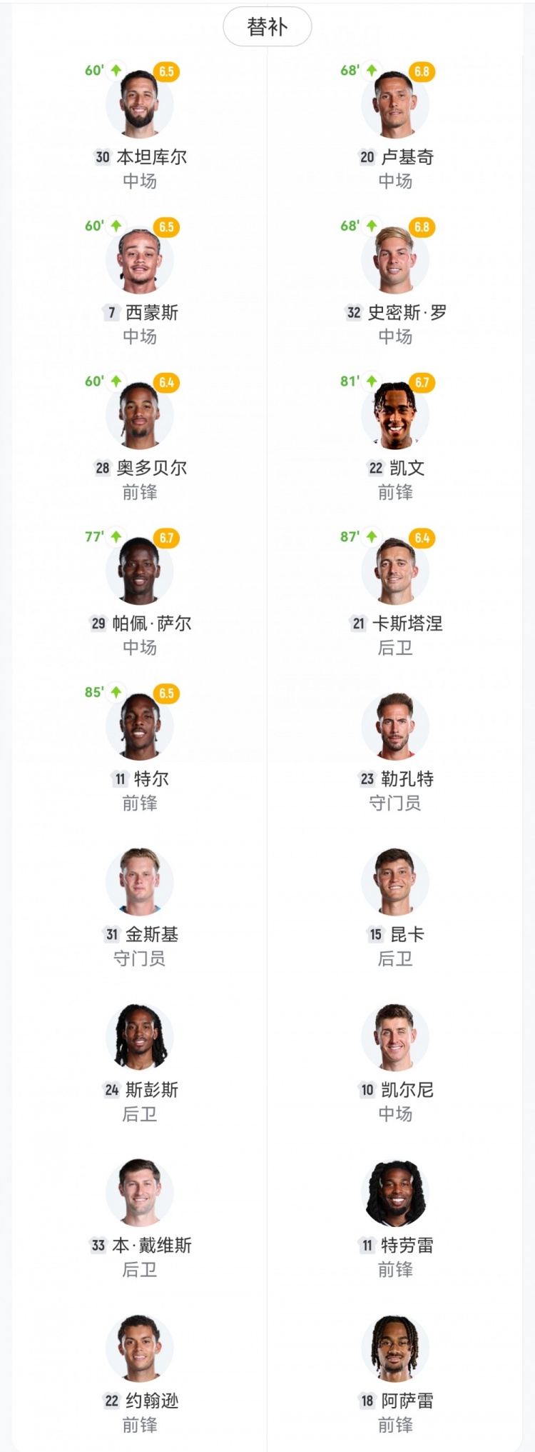 【双方首发及换人信息】