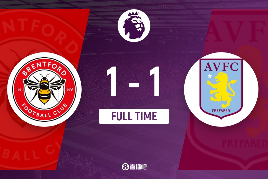 全场比赛结束,布伦特福德1-1阿斯顿维拉。