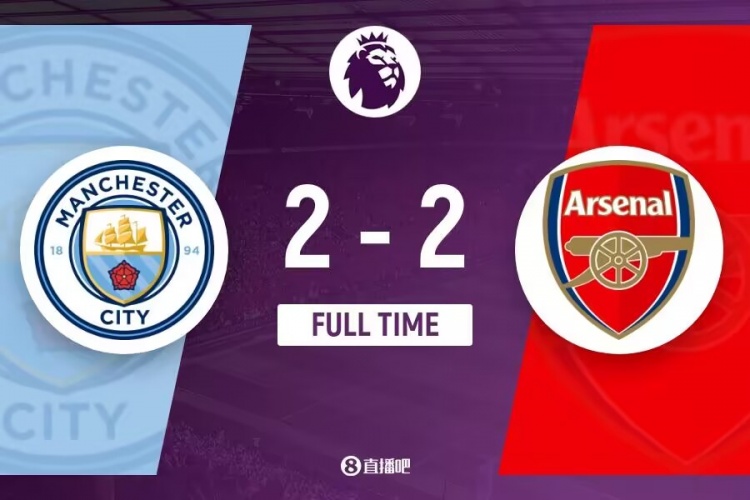 下半场伤停补时7分钟,全场比赛结束,最终曼城2-2阿森纳。