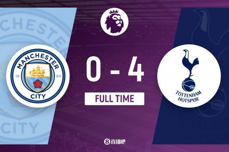 下半场伤停补时4分钟,全场比赛结束,最终曼城0-4热刺。