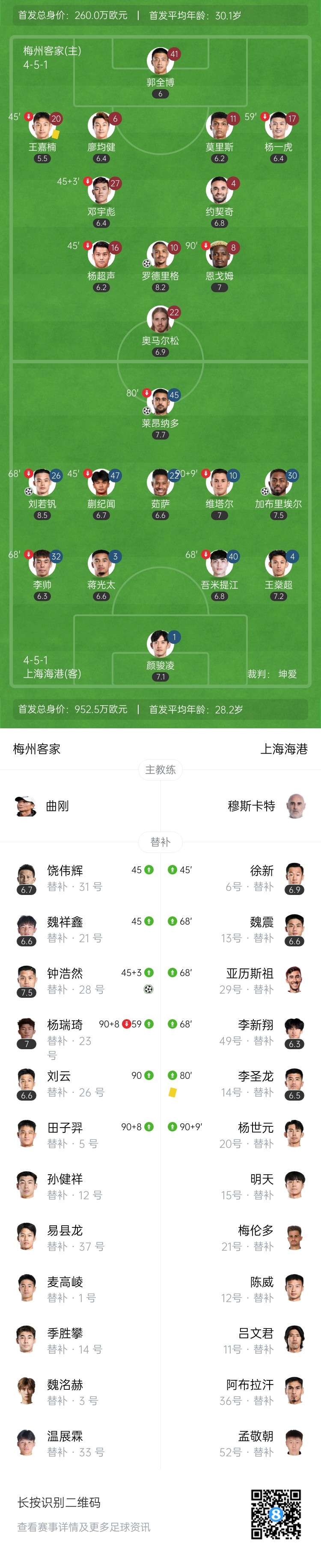 第29分钟,海港左路定位球机会,传中到门前,王嘉楠不慎自摆乌龙!上海海港3-0领先梅州客家↓
