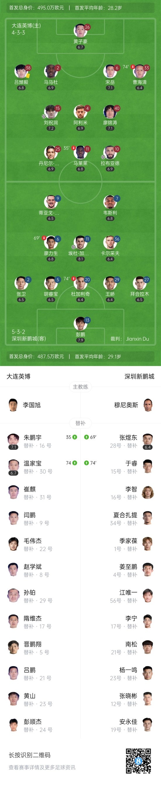 9月14日讯 北京时间9月14日19:00,中超联赛第24轮大连英博迎战深圳新鹏城的比赛在梭鱼湾专业足球场进行,上半场列昂索头球造险,马莱莱第34分钟被换下,埃杜加西亚推射破门,半场结束,大连英博0-1深圳新鹏城。下半场杜加利奇送点,拉布亚德主罚被扑随后补射破门,朱鹏宇助攻刘祝润抽射反超比分,最终大连英博2-1逆转深圳新鹏城近四轮首胜,大连积32分升第8,深圳积20分仍居13。