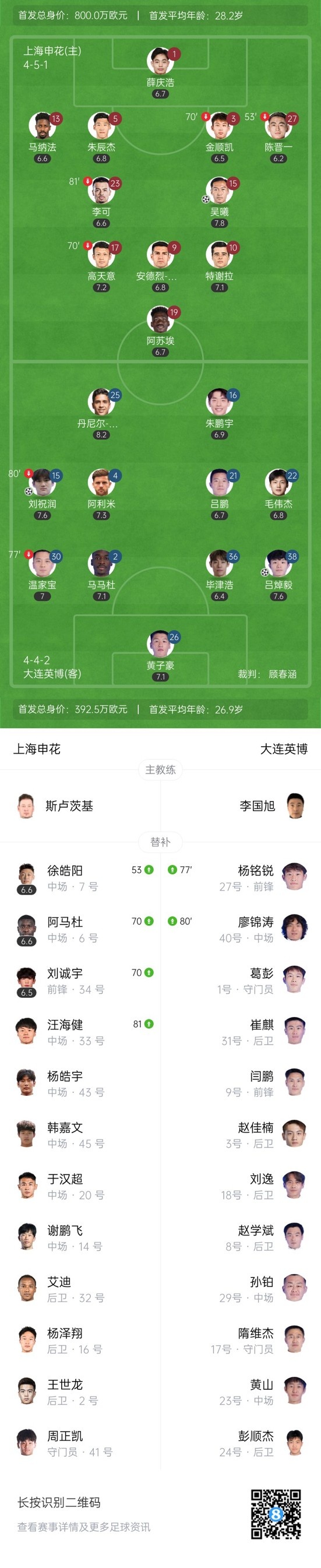 第42分钟,申花扳回一城!吴曦右路弧顶接直塞球到禁区推射破门,申花1-2大连英博。↓