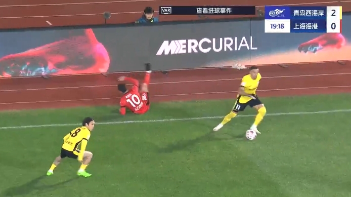 海港后防被断再次丢球!第19分钟,西海岸前场继续高位逼抢,戴维森左路断球后传中,阿齐兹禁区内转身扫射破门,青岛西海岸2-0上海海港!↓