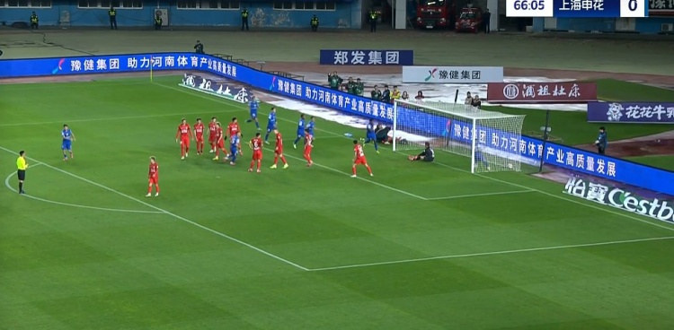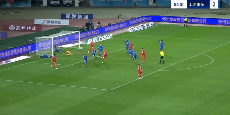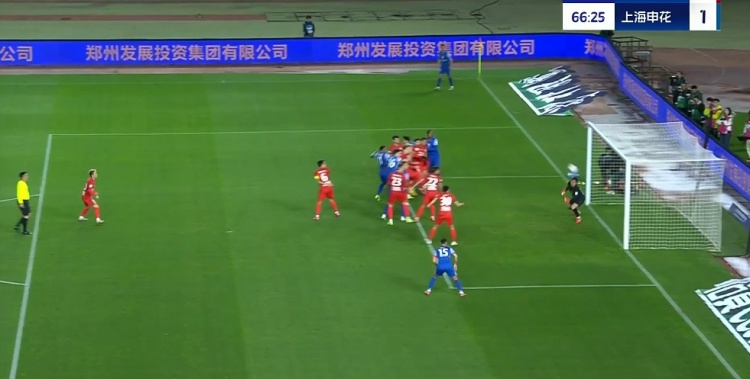 第85分钟,河南前场定位球机会,申花禁区内一片乱战,河南连续的打门都被封堵↓