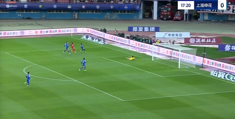 第55分钟,河南队左侧反击机会,阿奇姆彭加速下底传中送到后点,无人盯防的郑达伦跟进打门错失良机↓
