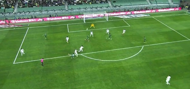 第58分钟,罗慕洛右路传到禁区第一点被顶出随后罗慕洛跟上抽射打偏了。↓