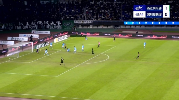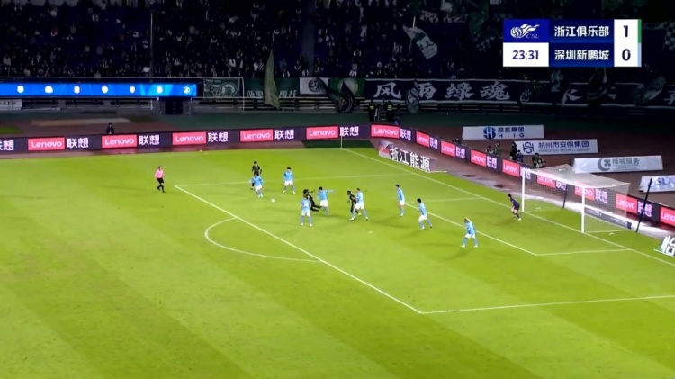 第13分钟,童磊传中,布彭扎头球一蹭,赵石出击没碰到球!球进了!布彭扎2场3球!浙江1-0领先深圳↓