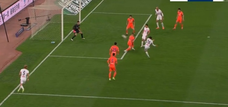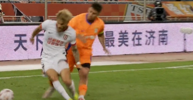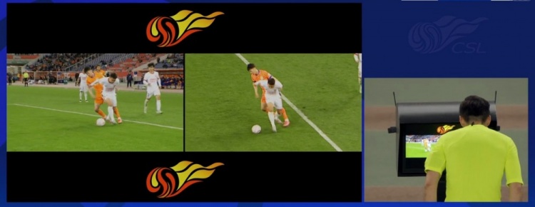 第80分钟,刘洋杀入禁区后和李扬发生对抗倒地,主裁判第一时间判罚点球,但经VAR回放后将点球取消。↓