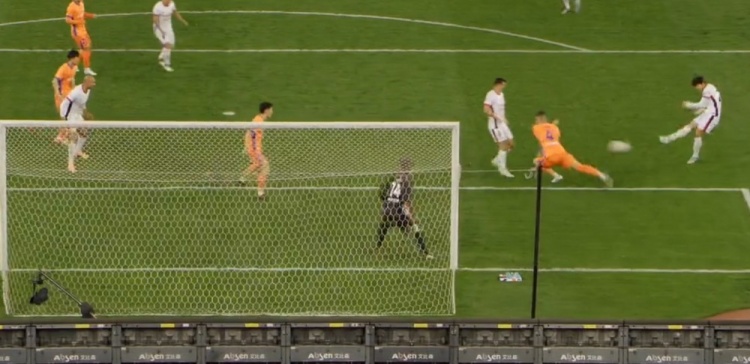 第14分钟,罗慕洛禁区左侧一脚低射偏出远端立柱。↓