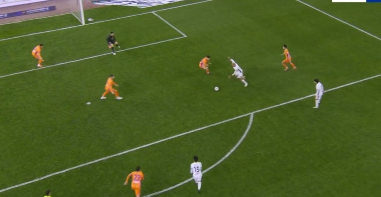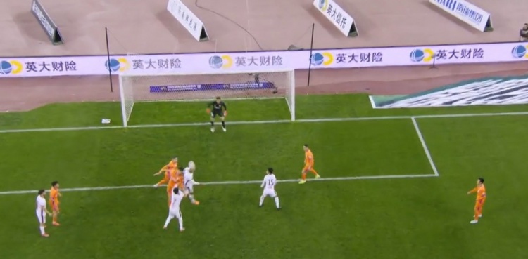 第77分钟,古尔芬克尔中场带球长驱直入杀入禁区,赵剑非关键倒地将球解围出底线。↓