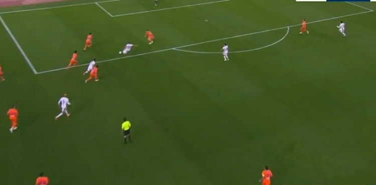 第28分钟,费利佩插上接队友直塞获得单刀机会,费利佩想要趟过王大雷时倒地,主裁判没有吹罚犯规。↓