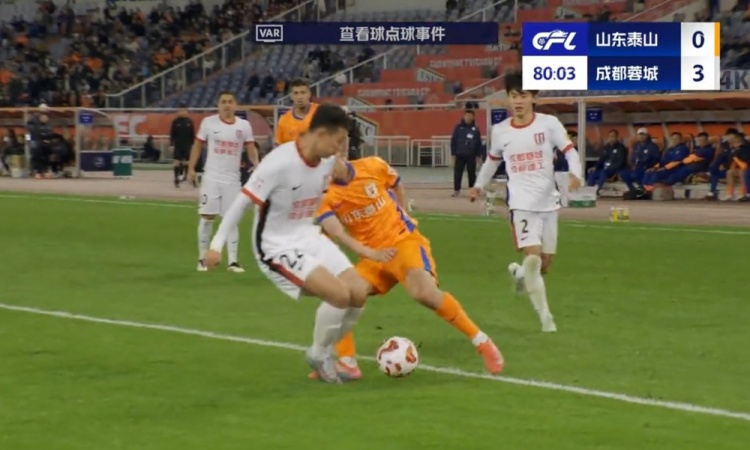 全场比赛结束,山东泰山0-3成都蓉城。