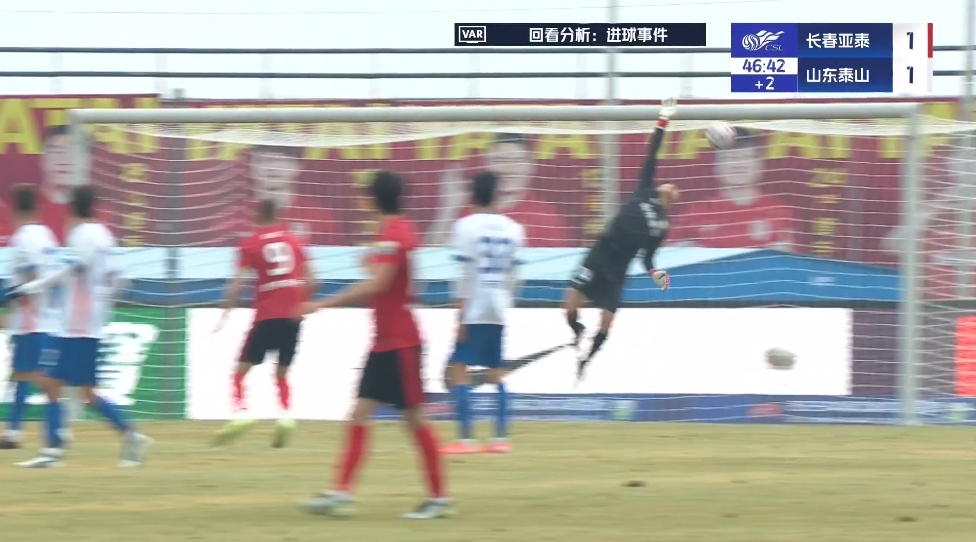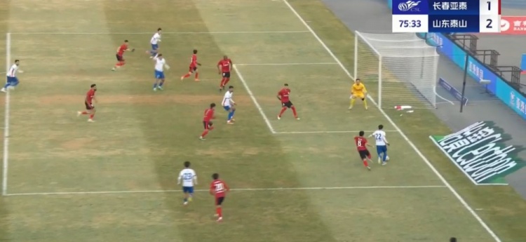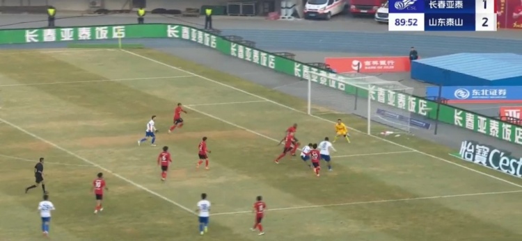 全场比赛结束,山东泰山客场2-1战胜长春亚泰。