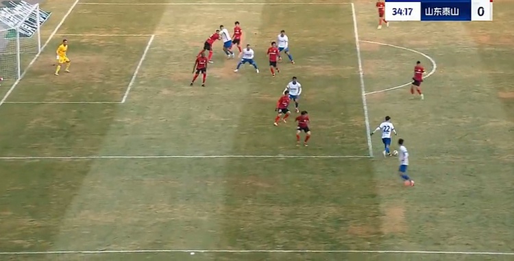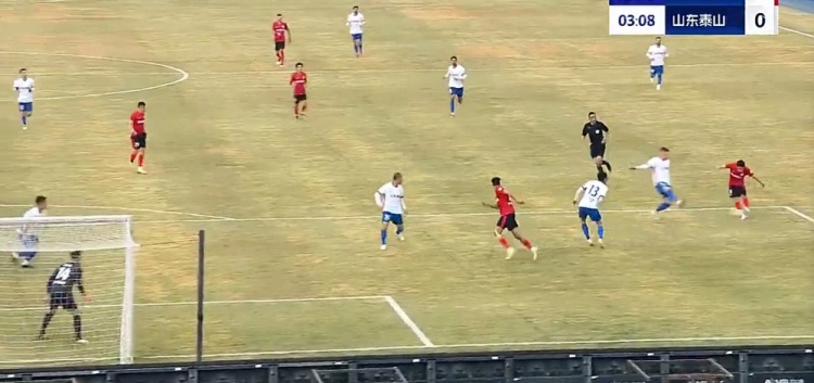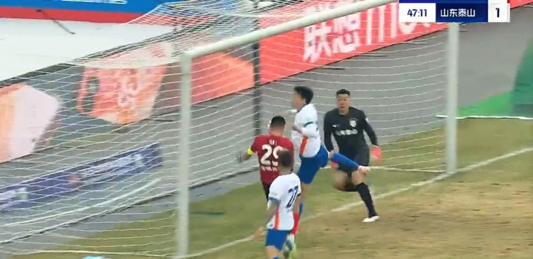 第5分钟,泰山右路传中,李源一前点头球后蹭顶高。↓