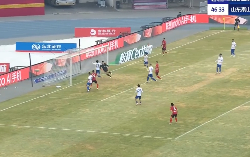 克雷桑头球破门,李源一5轮4助!泰山领先!第34分钟,李源一左路45度角斜传到禁区,克雷桑摆脱亚泰队员头球攻门入网,裁判最初判罚越位,随后通过VAR,裁判改判进球有效,长春亚泰0-1山东泰山!↓