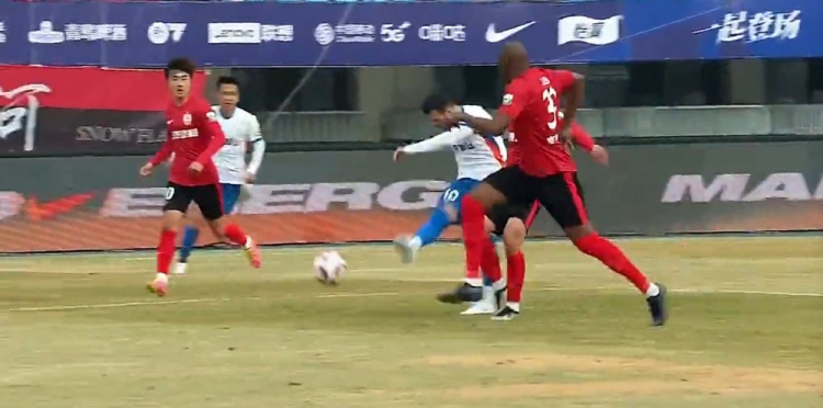 第19分钟,泽卡背身做球,卡扎伊什维利抗住防守球员突破,最后抽射被吴亚轲化解。↓