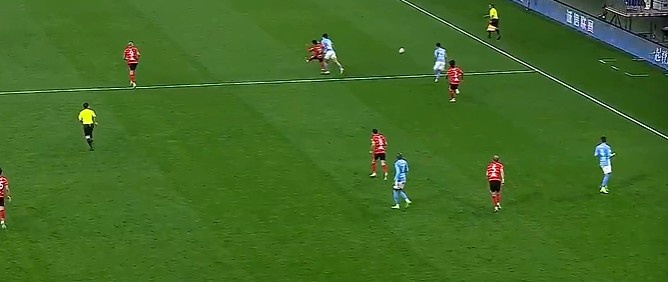 第10分钟,费利佩点球点附近摆渡给到胡荷韬近距离打门打在横梁上弹出。↓