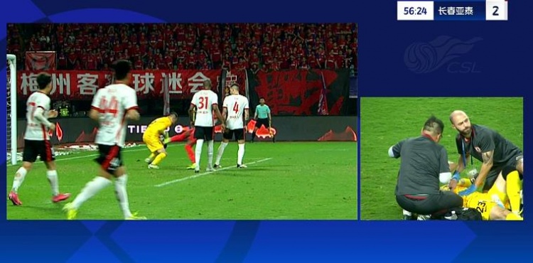 第38分钟,谭龙中场右侧得球,看门将站位靠前,直接一脚超远吊射破门,长春亚泰2-0梅州客家。↓
