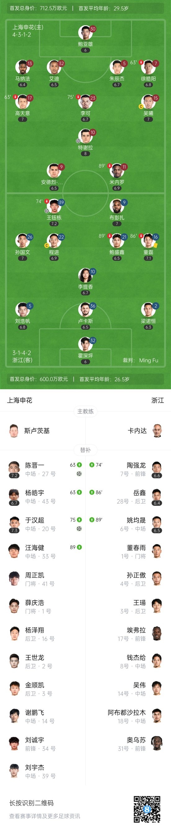 双方首发以及换人信息: