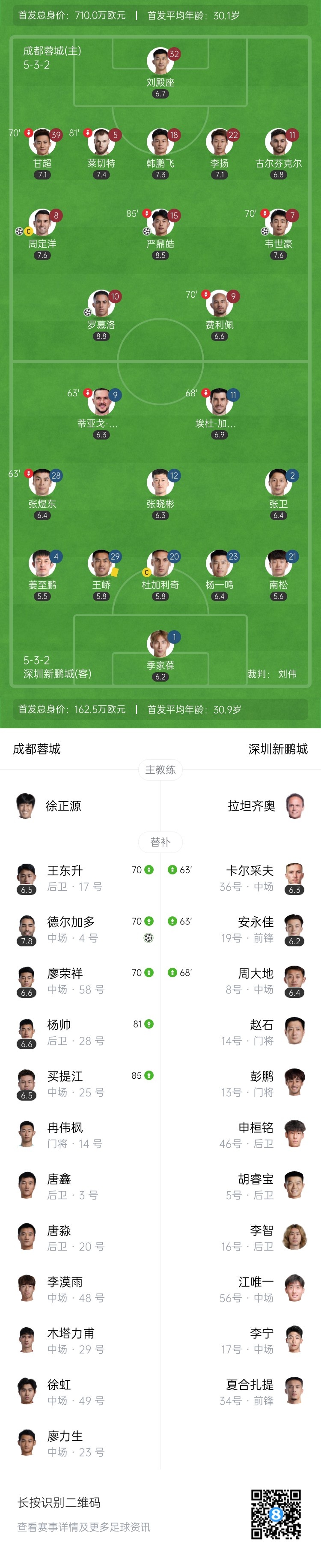 第79分钟,廖荣祥射门中柱!主裁回看VAR,此前张晓彬手球了!蓉城获得点球!周定洋主罚命中!成都蓉城5-0深圳新鹏城↓
