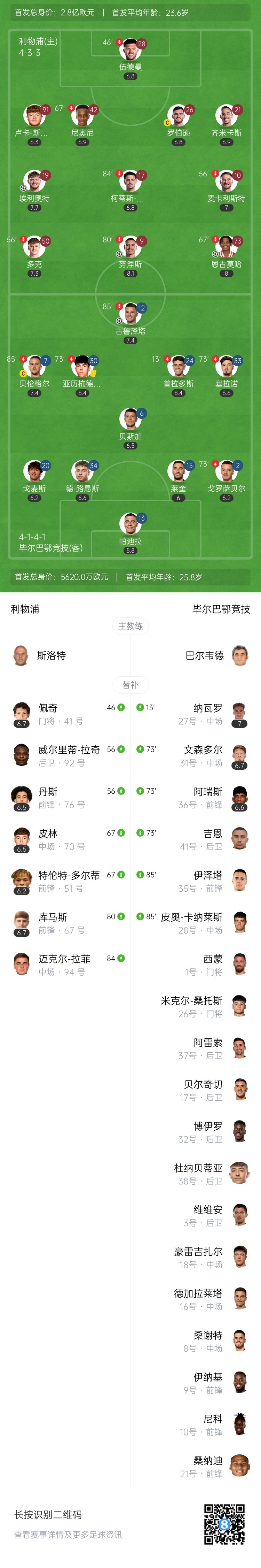 第76分钟,卢卡-斯蒂芬森禁区内头球解围失误,变成乌龙助攻!古鲁塔泽头球接力破门!毕尔巴鄂竞技扳回一球1-4利物浦↓