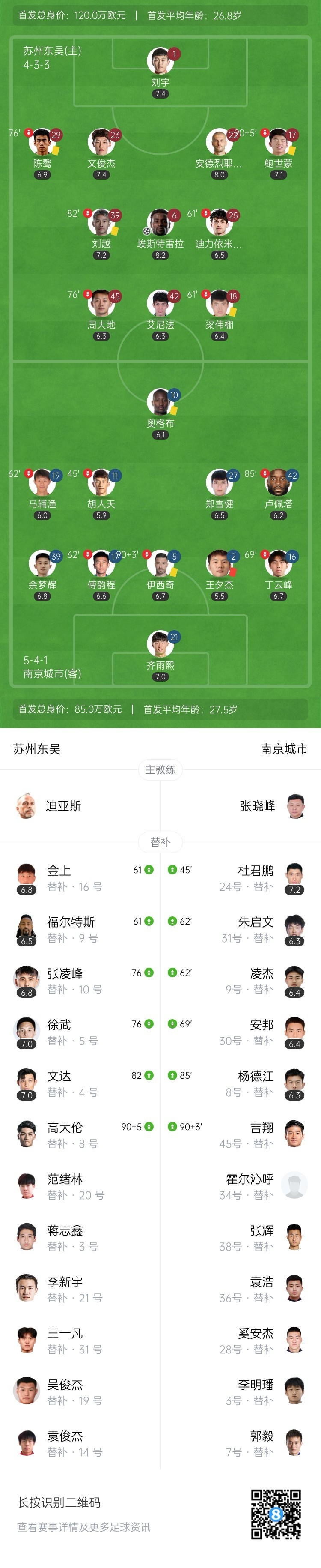 全场比赛结束,苏州东吴主场1-0战胜南京城市。