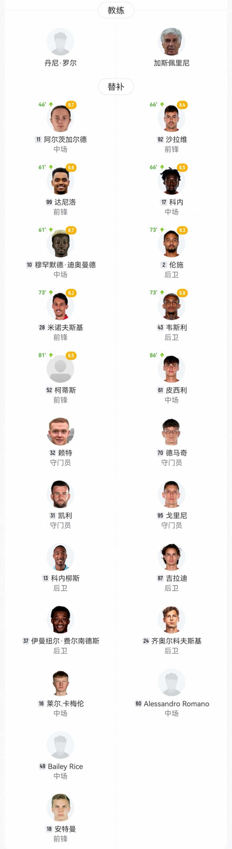 【双方首发及换人信息】