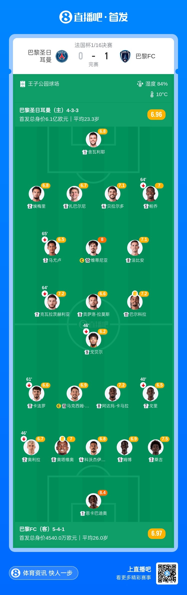 1月13日讯 北京时间4:10,法国杯1/16决赛巴黎圣日耳曼vs巴黎FC,比赛在王子公园球场打响!上半场,双方均无建树;下半场,登贝莱错失单刀机会,伊科内破门弑旧主!埃梅里击中门框!最终,巴黎圣日耳曼爆冷0-1不敌巴黎FC,止步法国杯32强!