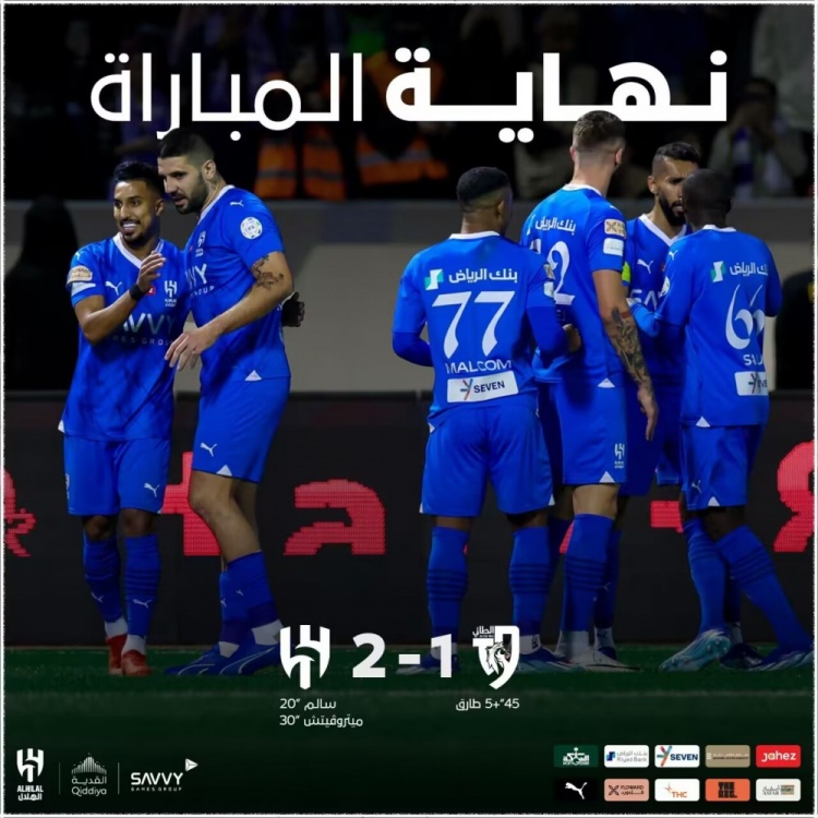 米特洛维奇亲自主罚点球命中,利雅得新月2-0塔伊。↓