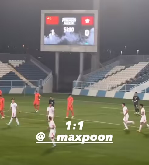比赛第54分钟:国足遭扳平1-1中国香港,潘沛轩破门,此后第56分钟王上源染红。