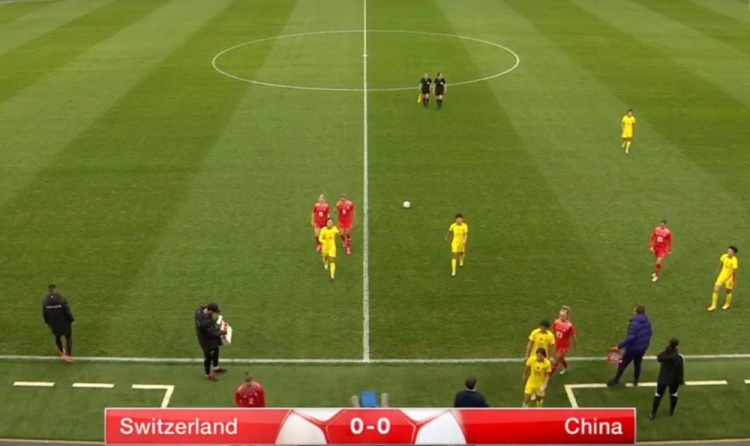 第43分钟,瑞士队右路任意球开到禁区,汉姆转身打门击中立柱,瑞特勒跟上补射被徐欢扑出!↓