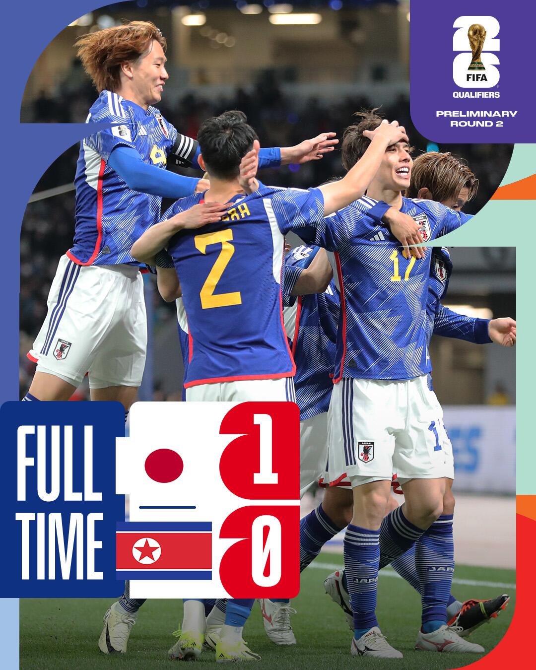 3月21日讯 北京时间3月21日18点23分,世预赛亚洲区第二阶段B组第三轮日本对阵朝鲜。上半场开场不到2分钟田中碧包抄破门,堂安律错失单刀。下半场,朝鲜射中立柱后的补射破门被吹。全场比赛结束,日本1-0朝鲜。