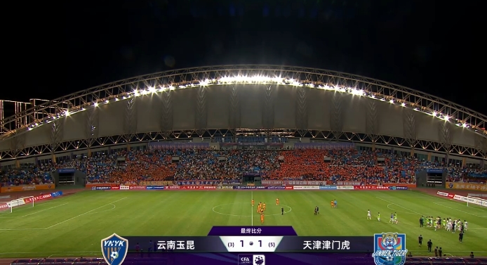 津门虎补时绝平!第90+3分钟,津门虎队员长传到禁区,无人盯防的格兰特头球破门,云南玉昆1-1天津津门虎!↓