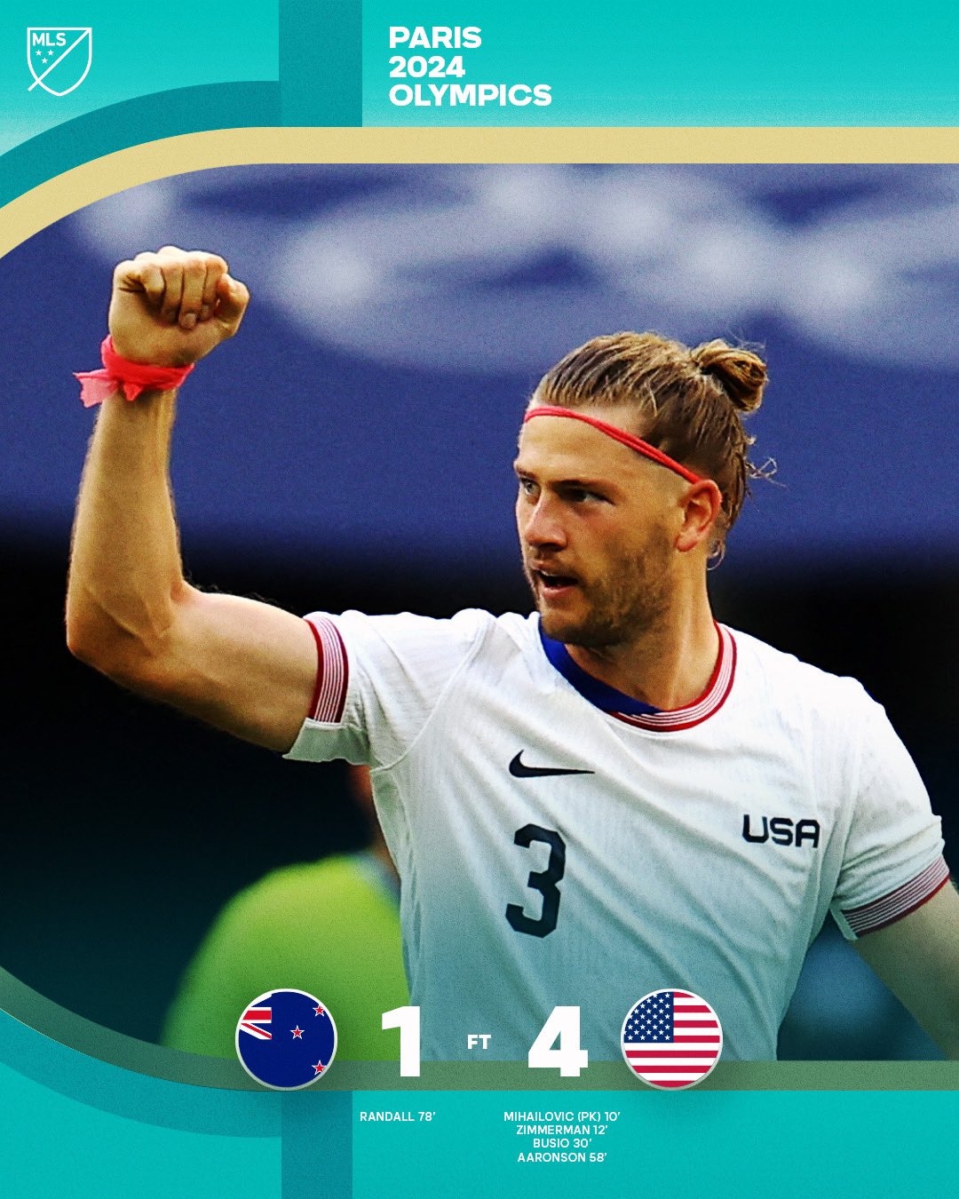 7月28日讯 奥运男足小组赛A组,美国国奥4-1战胜新西兰国奥。