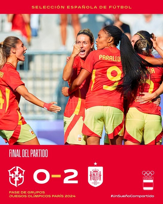 8月1日讯 奥运女足小组赛C组最后一轮,西班牙女足2-0战胜巴西女足。