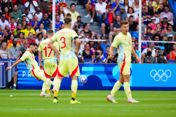 8月10日讯 北京时间8月10日0点,奥运男足金牌赛,法国对阵西班牙。上半场,特纳斯扑救失误,米洛特射门得分,费尔明连进两球反超比分,巴埃纳任意球直接破门。下半场,科内头球中框,阿克利乌什扳回一球,补时阶段图连特斯送点,马特塔点射绝平,图连特斯最后关头射中门框。加时赛,卡梅洛挑射打进两球。全场比赛结束,西班牙5-3法国夺得金牌。