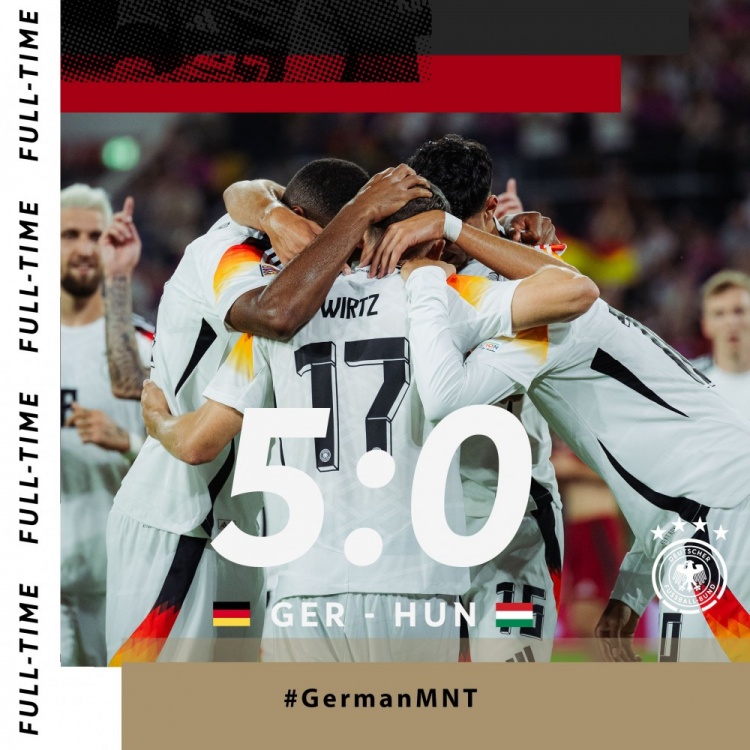 9月8日讯 欧国联A级联赛第1轮,德国对阵匈牙利。上半场,穆西亚拉助攻菲尔克鲁格破门。下半场,穆西亚拉建功,再先后助攻维尔茨和帕夫洛维奇!本场穆西亚拉1射3传独造4球!维尔茨也完成传射;哈弗茨造点亲自主罚破门!最终,德国队5-0大胜匈牙利!