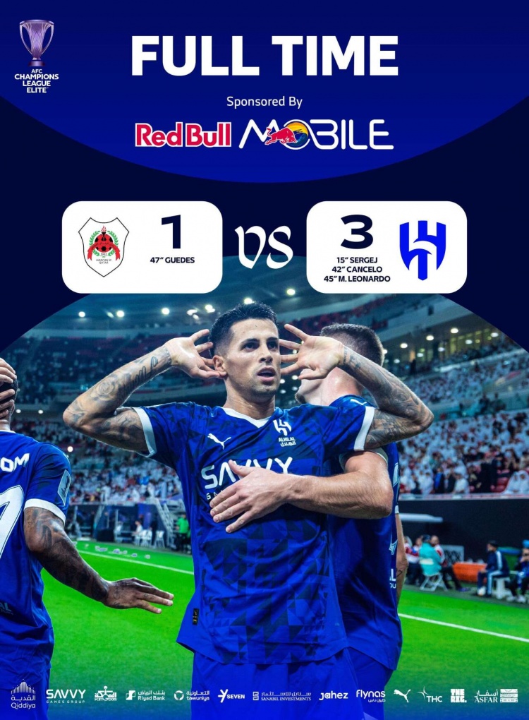 9月18日讯 北京时间9月18日0点,亚冠精英联赛西亚区第一轮,利雅得新月客战赖扬。上半场,马尔科姆先后助攻米林科维奇和坎塞洛破门,莱昂纳多再进一球。下半场,格德斯扳回一球,米特洛维奇造点,但他亲自主罚点球被门将扑出。全场比赛结束,利雅得新月3-1赖扬。