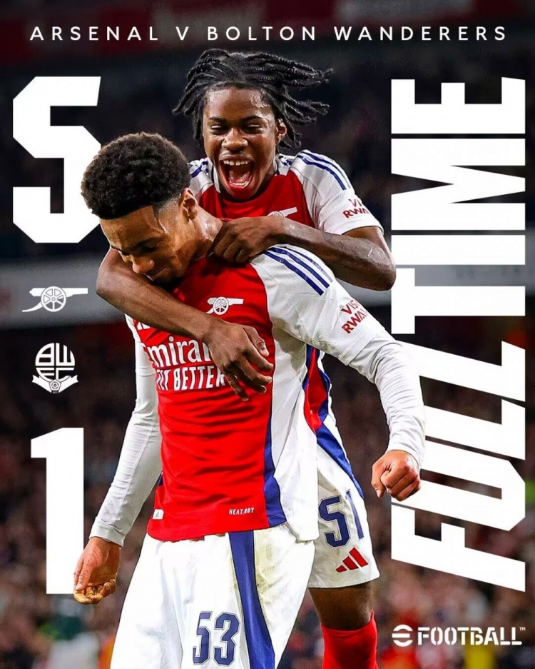 阿森纳首发:92-波特、51-尼科尔斯、15-基维奥尔、33-卡拉菲奥里(70‘47-卡库里)、49-斯凯利(60'6-加布里埃尔)、41-赖斯(60'29-哈弗茨)、20-若日尼奥、53-恩瓦内里、7-萨卡(70‘11-马丁内利)、30-斯特林(80'46-卡比亚)、9-热苏斯