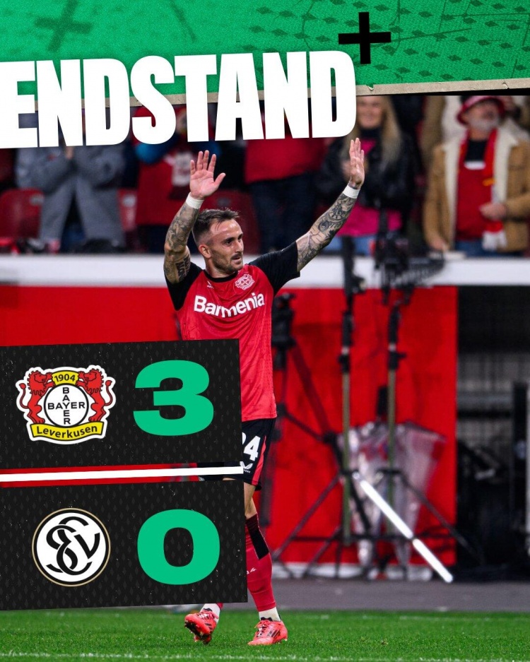 10月30日讯 北京时间10月30日凌晨1时整,2024-25赛季德国杯第2轮在拜耳竞技场展开角逐,勒沃库森坐镇主场迎战艾禾斯堡。上半场希克闪击+7分钟双响,阿莱克斯任意球世界波,下半场双方均无建树。最终勒沃库森主场3-0完胜艾禾斯堡,药厂晋级德国杯第3轮+终结各赛事两连平。