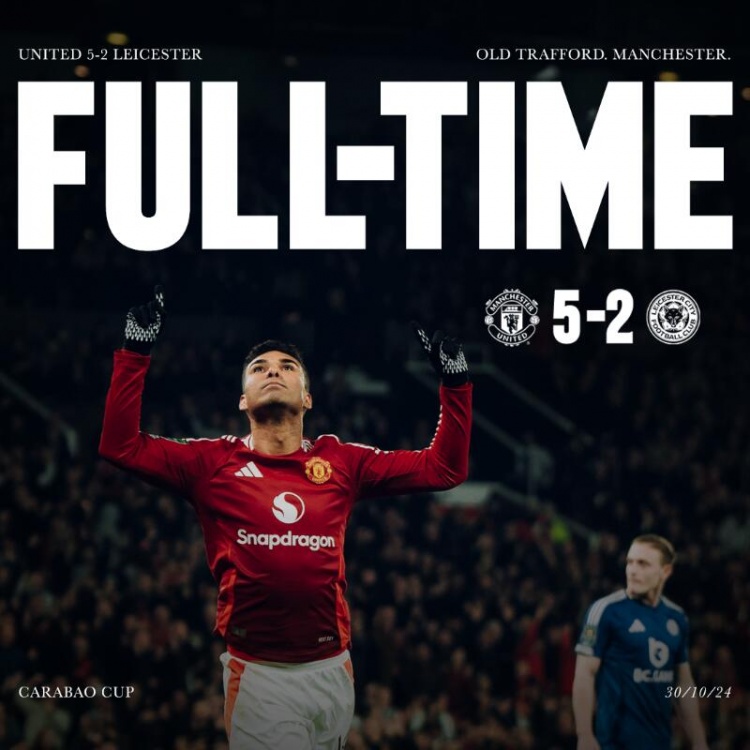 10月31日讯 联赛杯16强阶段,曼联主场迎战莱斯特城。本场比赛是滕哈赫下课后曼联首战,目前临时主帅是范尼。上半场,卡塞米罗双响,加纳乔、B费建功;埃尔哈努斯、考迪为莱斯特城打进2球。下半场,B费过掉门将破门完成双响!最终,曼联5-2大胜莱斯特城晋级联赛杯8强!
