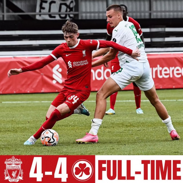 全场比赛结束,利物浦4-4战平菲尔特。